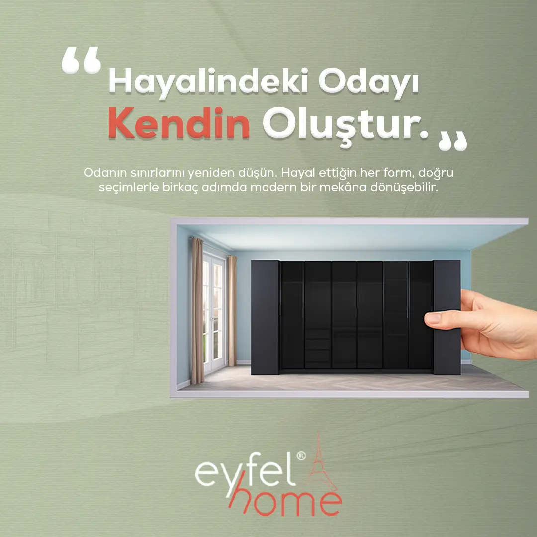 12 yılı aşkın süredir ev mobilyası sektöründe hizmet veren EYFEL HOME, müşteri memnuniyetini sadece bir hedef değil, var oluş nedeni olarak benimsemiştir. Her bir üründe, her bir hizmette ve her bir dokunuşta bu ilkemizi yansıtmaktan gurur duyuyoruz.